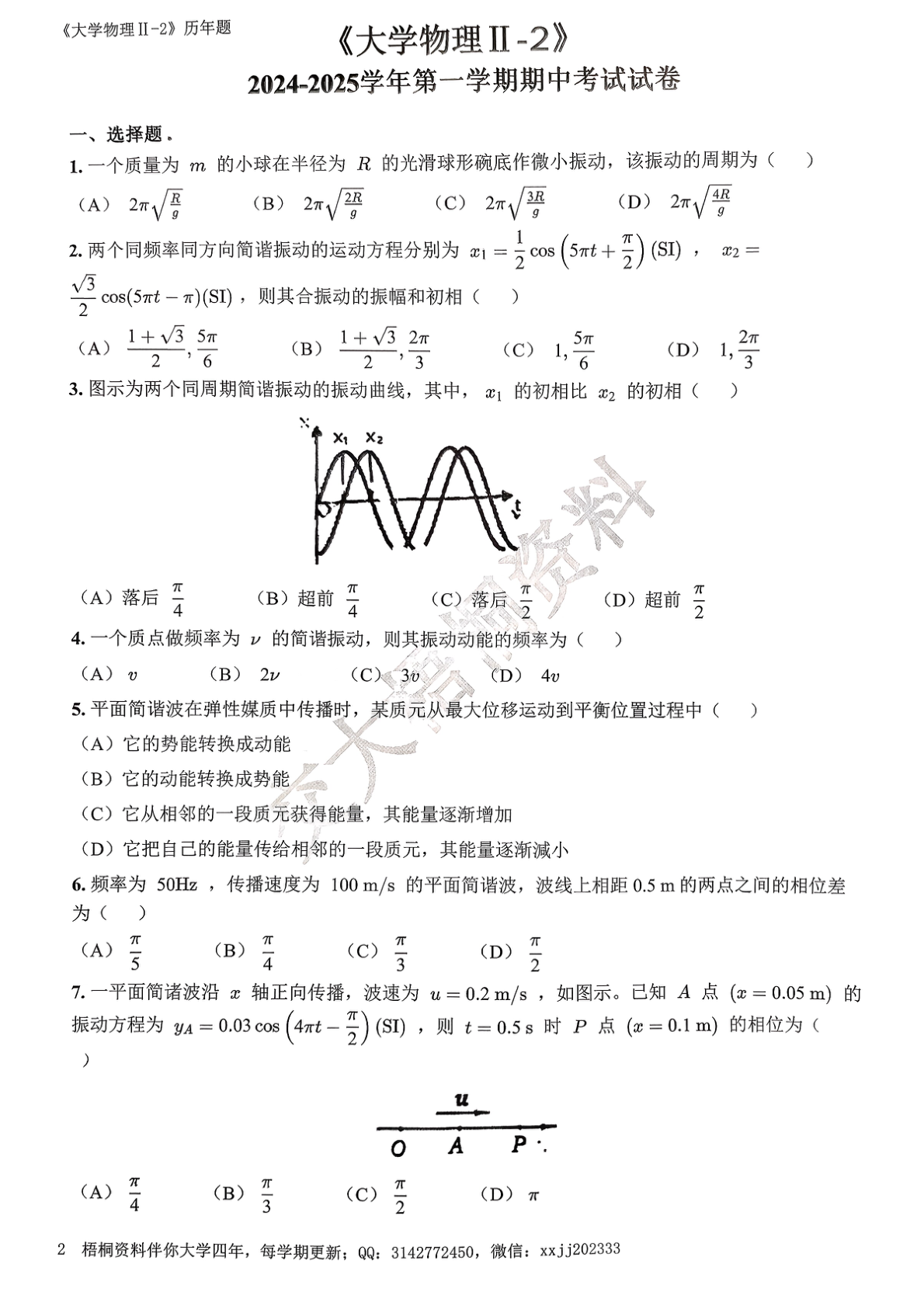 简介 | 大物下22-24年期中真题及答案(梧桐资料)