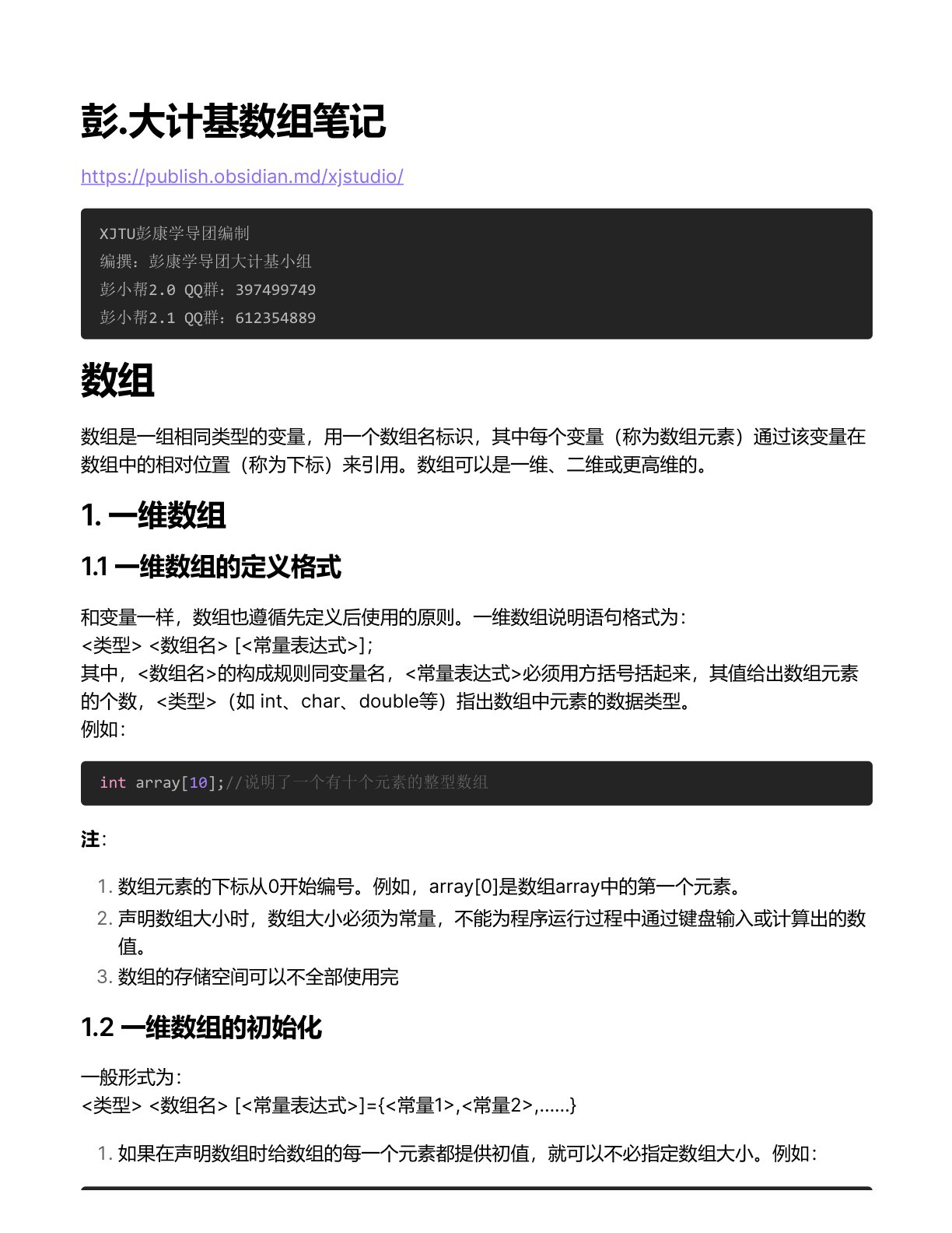 简介 | 彭.大计基数组笔记
