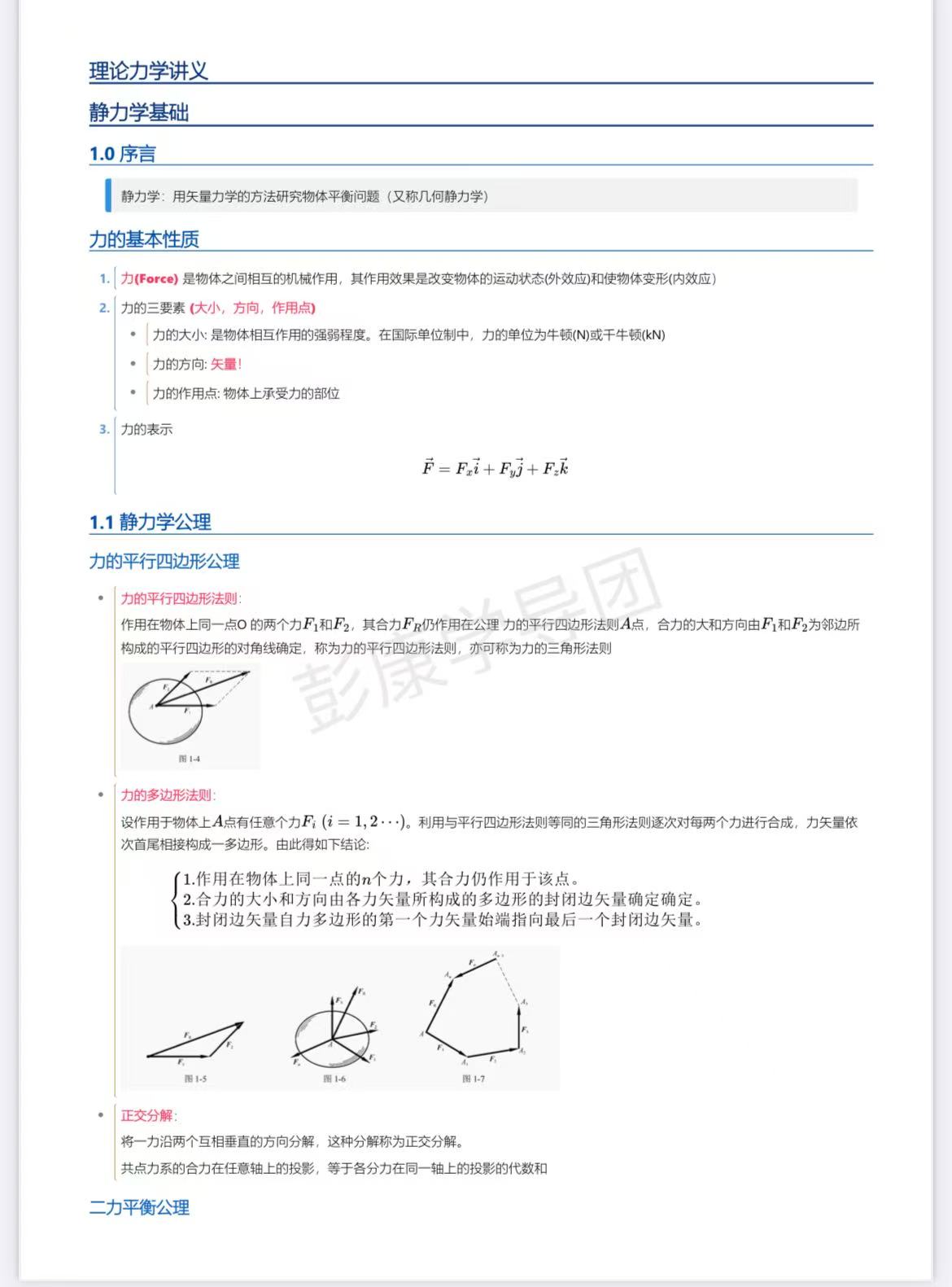 这是理论力学讲义,按照教材内容进行梳理,对重难点着重讲解