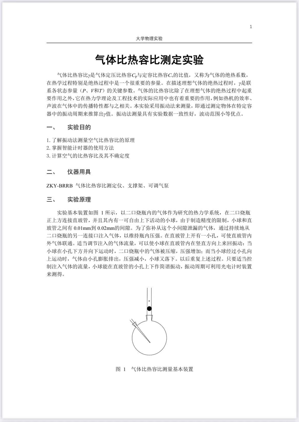 这是大物实验43+气体比热容比测定实验的实验内容介绍
