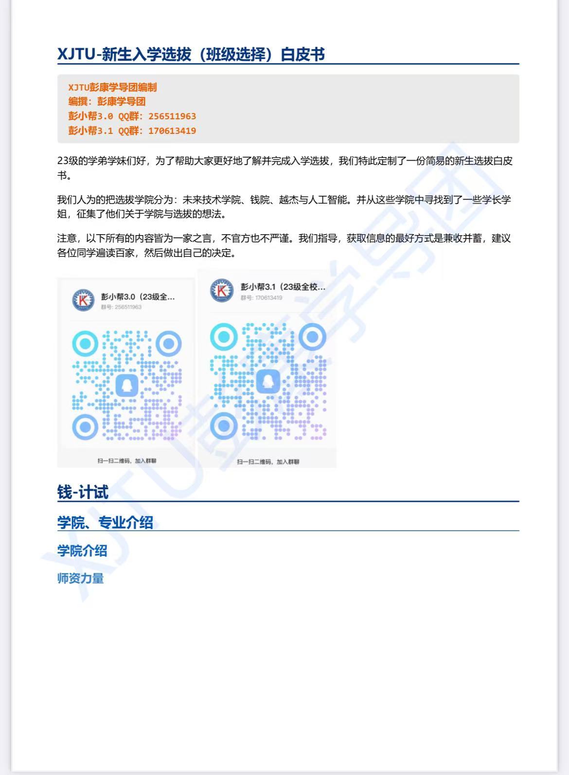 这是XJTU-2023新生入学选拔(班级选择)白皮书,涵盖入学后需要处理的各项事务