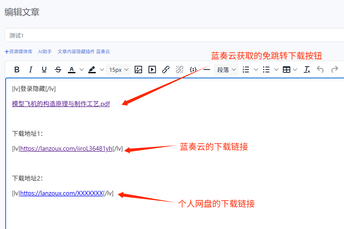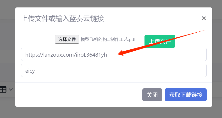 注:如“获取下载链接”失败,直接复制上传后第一行返回的链接插入dv中即可
